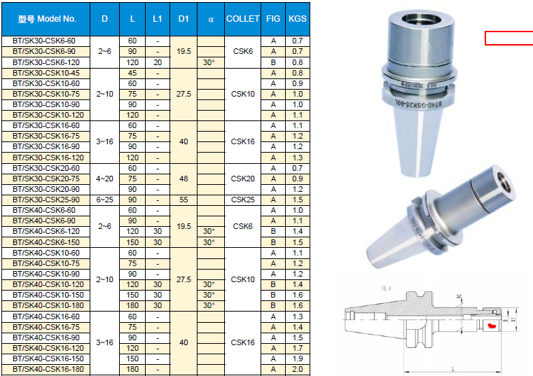 BT/SK(DIN69871A) GSK高轉(zhuǎn)速精密筒夾刀柄